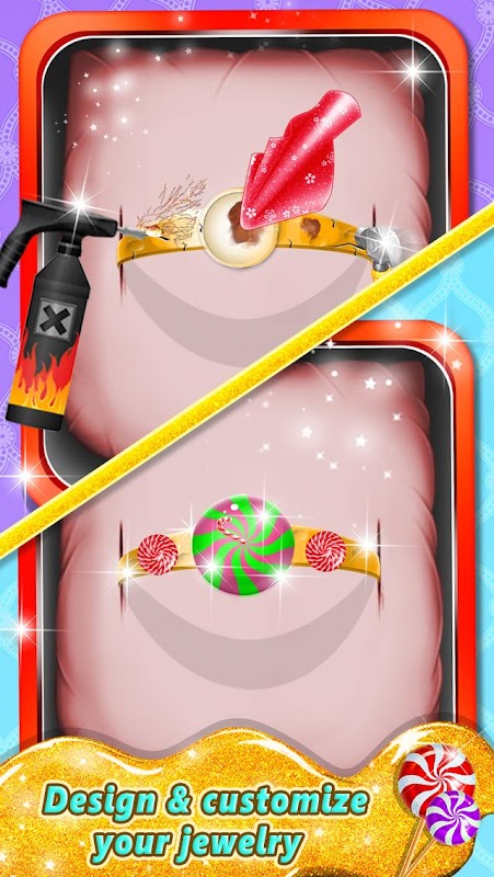 Trong trò chơi ngọt ngào này, mọi thứ đều liên quan đến kẹo. Làm tóc và làm móng, ăn mặc, trang điểm, ai cũng muốn trở thành nữ hoàng. Tạo cảm giác với những ý tưởng tạo mẫu tóc nhỏ của bạn. Cô gái nhỏ, hãy giúp những cô gái kẹo ngọt ngào chuẩn bị cho bữa tiệc đêm như những người đẹp dự vũ hội. Thể hiện kỹ năng làm móng kẹo ngọt ngào tuyệt vời của bạn bằng cách tạo ra nghệ thuật làm móng ngọt ngào nhất. Các cô gái muốn khoe những thiết kế móng tay kẹo ngọt ngào của mình, vì vậy hãy sơn móng tay cho họ theo cách chưa từng có. Kim tuyến kẹo sẽ tăng thêm nét quyến rũ cho móng tay búp bê tình yêu.