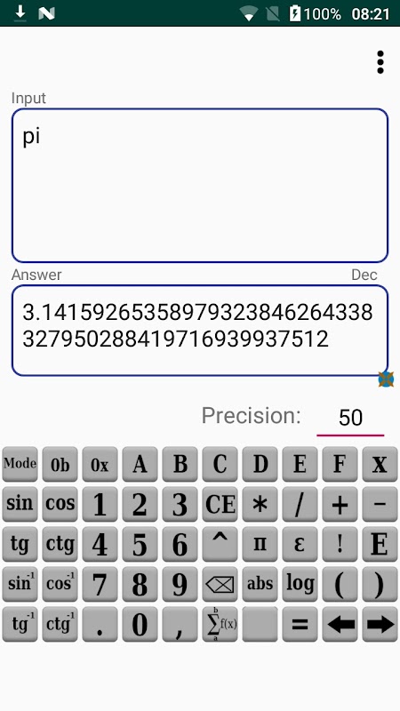 Thật tuyệt vời khi cần có kết quả chính xác cao. Chỉ cần đặt độ chính xác thành một số dương và máy tính sẽ tính toán số chữ số được chỉ định.