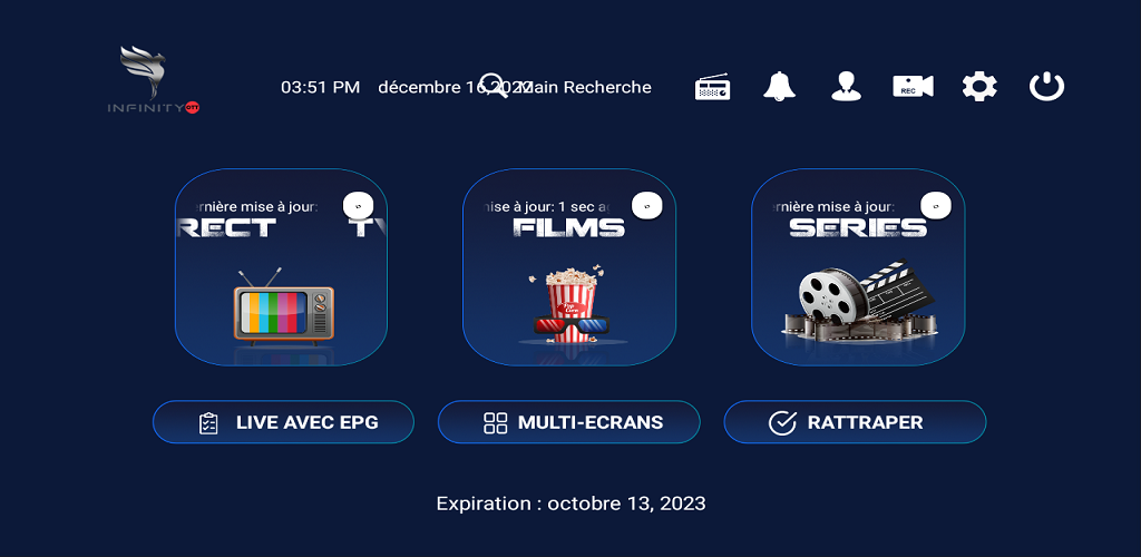 Ứng dụng INFINITY OTT Playerr là một trình phát đa phương tiện tuyệt vời cho phép người dùng cuối phát nội dung của họ như Live TV, VOD, Sê-ri và các tệp âm thanh/video cục bộ do họ cung cấp; trên điện thoại Android, Android TV, FireSticks và các thiết bị Android khác của họ.