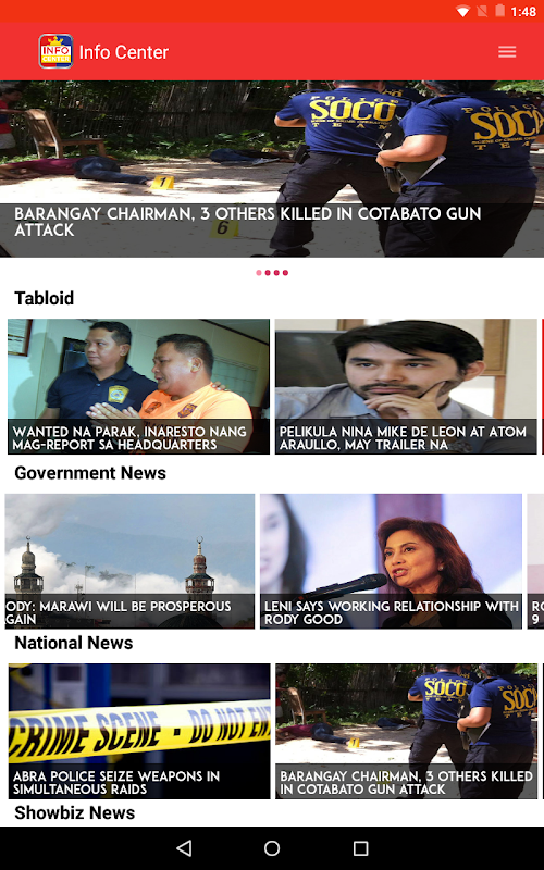 Info Center offers personally curated news, hand-picked interesting and best stories from thousands of sources, including newspapers, tabloids, magazines, blogs, and social networks. Different interests such as current news, government, showbiz, sports and even Lotto tips and Lotto result.