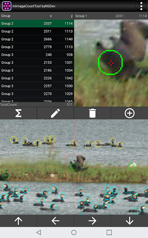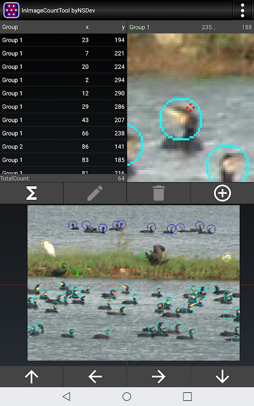 Trong hình ảnh, bạn có thể di chuyển điểm bạn muốn đếm vào giữa màn hình phóng to ở phía trên bên phải và nhấn vào nút thêm để thêm điểm và đếm số.