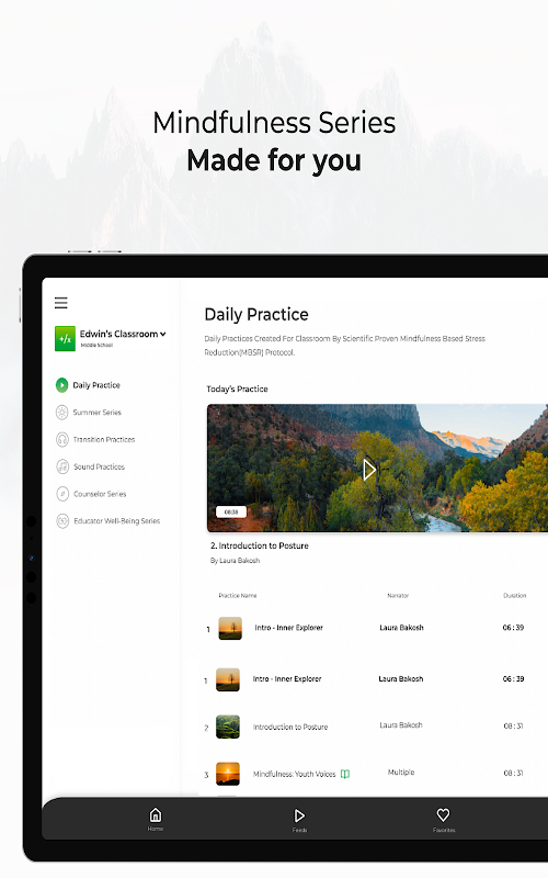 Ứng dụng Lớp học Inner Explorer – chương trình chánh niệm tốt nhất được thiết kế dành cho giáo viên, học sinh và gia đình. Ứng dụng của chúng tôi có 180 bài thực hành chánh niệm có hướng dẫn bằng âm thanh được thiết kế cho bốn nhóm tuổi, từ Học tập sớm đến lớp 12. Mô hình của Inner Explorer dựa trên giao thức Giảm căng thẳng dựa trên chánh niệm (MBSR) nổi tiếng, đã được chứng minh là có tác dụng giảm căng thẳng, nâng cao thành tích học tập và cải thiện kỹ năng tự điều chỉnh.