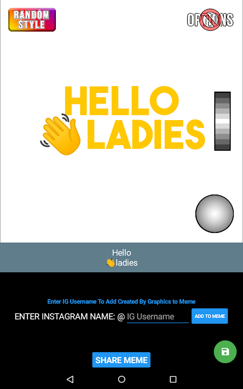 Simple, fast, easy to use text editor for creating Memes. Developed especially for Instagram users. You can enter you Instagram screen name to insert your profile picture into your meme. Also feature a Random Style Button which chooses a unique color/font combination each time it is pressed.