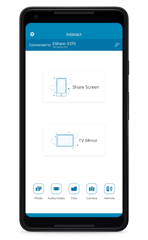Kết nối thông minh hơn, Chia sẻ màn hình không dây trong tương tác giúp cộng tác trên màn hình lớn nhanh hơn và dễ dàng hơn cho nhóm và khách của bạn. Ứng dụng Intereact dành cho Andorid cung cấp một cách linh hoạt, an toàn và dễ dàng để cộng tác và chia sẻ nội dung từ phòng họp công ty, phòng trò chuyện nhóm, giảng đường hoặc lớp học. Để sử dụng, bạn cần cài đặt bộ thu Tương tác trên màn hình của mình.