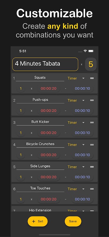 • Dễ dàng tạo, chỉnh sửa và lưu các thói quen tập luyện của riêng bạn với chức năng tùy chỉnh trong Interval Timer: Workout Timer.