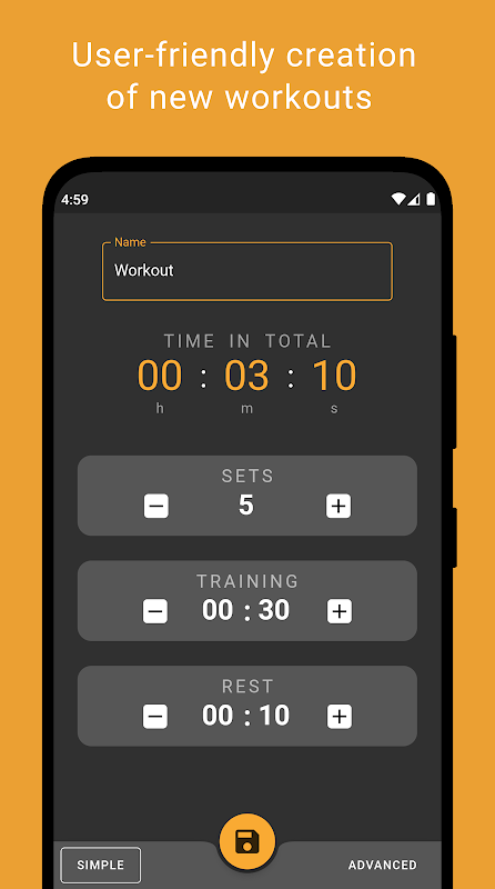 Ứng dụng tập trung vào các khía cạnh quan trọng nhất để cho phép bạn đào tạo đơn giản mà không cần nỗ lực nhiều trong việc tạo ra các đơn vị đào tạo riêng lẻ. Thiết kế hiện đại và tối giản hỗ trợ bạn trong việc tạo các bài tập hoàn toàn miễn phí và có thể cấu hình riêng. Chọn màu sắc và âm thanh của riêng bạn. Hãy vui vẻ với nó!