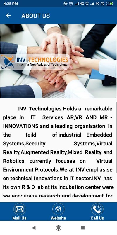 INV Technologies Holds a remarkable place in IT Services AR,VR AND MR - INNOVATIONS and a leading organisation in the feild of industrial Embedded Systems,Security Systems,Virtual Reality,Augmented Reality,Mixed Reality and Robotics currently focuses on Virtual Environment Protocols.We at INV emphasis on technical Innovations in IT sector.