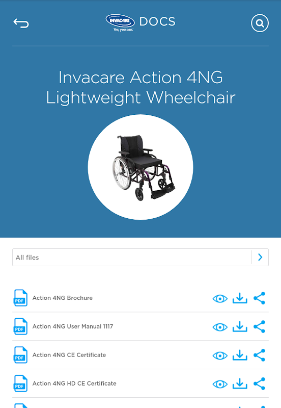 Mọi thứ bạn cần biết về bất kỳ sản phẩm Invacare nào chỉ bằng một nút bấm.