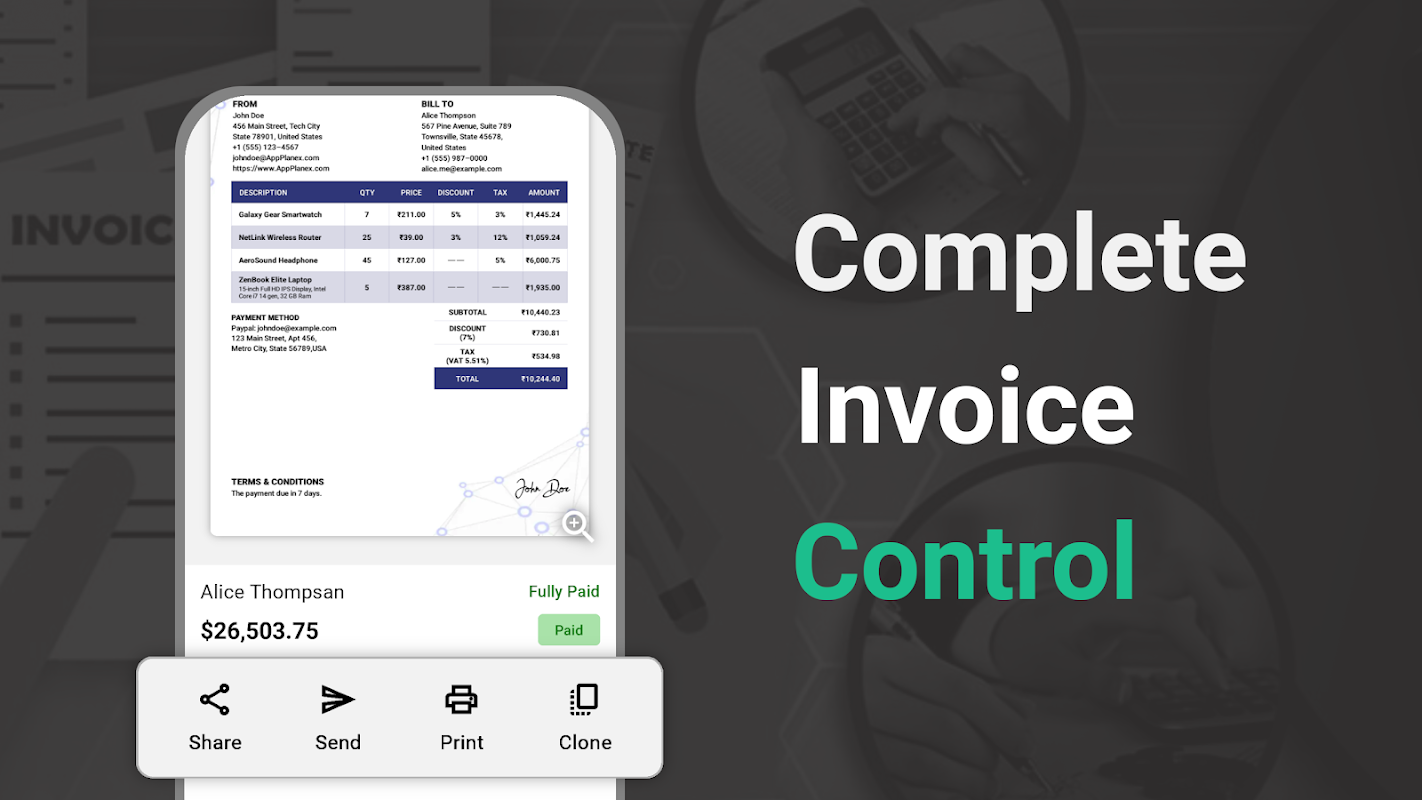 ✔ Gửi hóa đơn và ước tính qua email cho người khác bất cứ lúc nào.