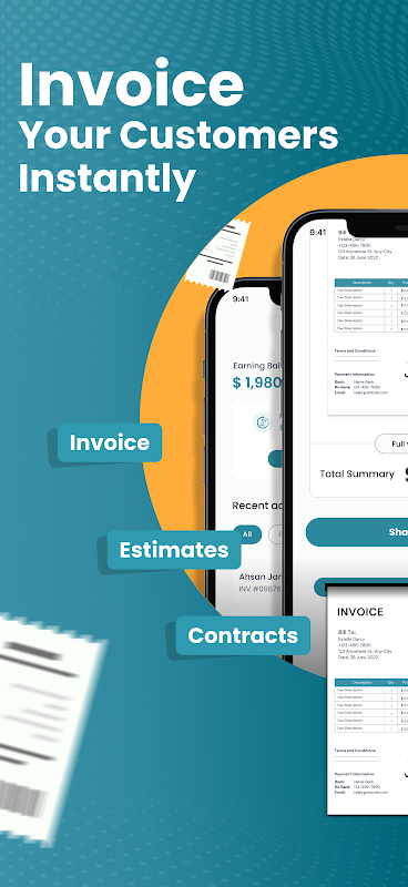 Tạo hóa đơn đơn giản từ mọi nơi bằng ứng dụng hóa đơn và hóa đơn trên thiết bị di động của chúng tôi. Với trình tạo hóa đơn di động, hãy gửi tài liệu ngay sau khi hoàn thành dự án. Cập nhật ước tính thanh toán tại chỗ bằng ứng dụng ước tính của chúng tôi. Kiểm tra trạng thái thanh toán và biên lai kinh doanh trong khi gặp khách hàng.