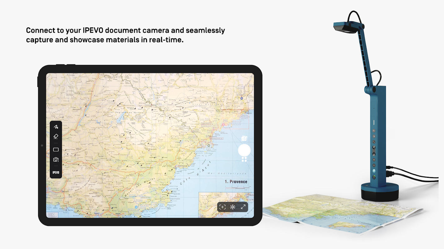 Dễ dàng kết nối với camera giáo dục IPEVO của bạn qua Wi-Fi hoặc kết nối có dây, cho phép hiển thị hình ảnh trên thiết bị di động của bạn. Tương thích với cả tùy chọn camera trước và sau để đáp ứng nhu cầu đa dạng.