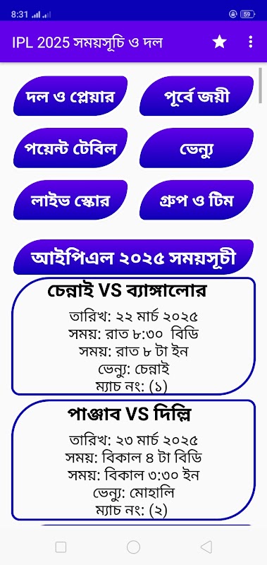 Thông tin APK IPL 2025 সময়সূচি ও দল
