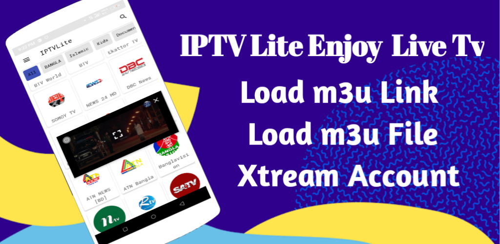 Add any IPTV (.m3u file) (.m3u url) (Xtream Account) through the IPTV Lite - Enjoy Live Tv app