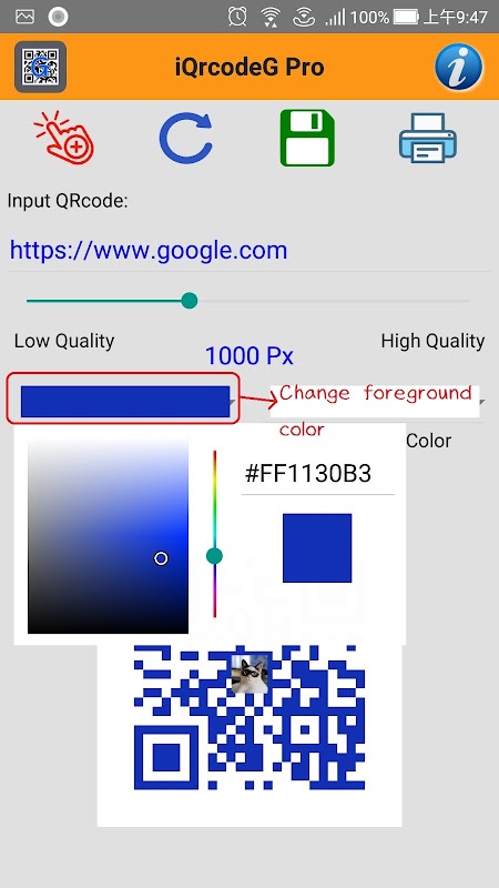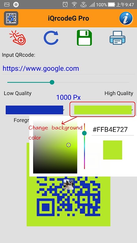 2. Bạn có thể điều chỉnh màu nền trước của mã vạch và màu nền