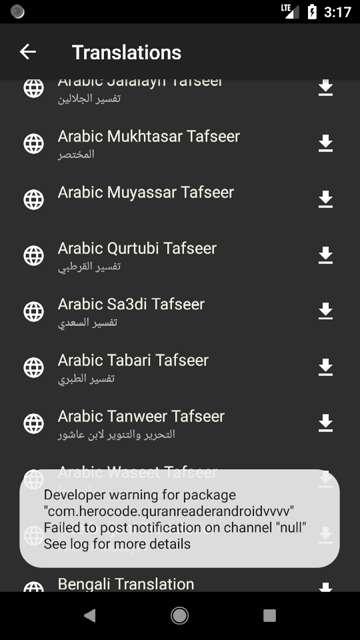 * Several downloadable recitations for verse by verse recital (supports gapless/continuous recitation for all reciters except Husary)