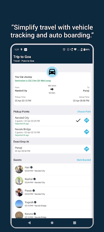Tối ưu hóa hậu cần du lịch bằng cách định cấu hình các điểm đón và trả khách có thể tùy chỉnh, trao quyền cho người tham gia chọn địa điểm ưa thích của họ. Nâng cao hiệu quả bằng cách theo dõi liền mạch nơi ở của xe buýt và địa điểm lên xe của hành khách trong thời gian thực để phối hợp hợp lý.