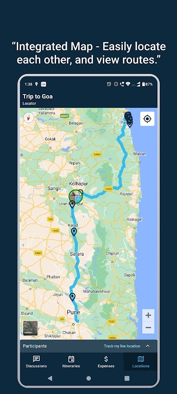 Đảm bảo sự an tâm trong chuyến du lịch của bạn bằng cách duy trì kết nối với những người bạn đồng hành thông qua tính năng theo dõi vị trí của Iratrips. Dễ dàng theo dõi vị trí của những người bạn đồng hành của bạn trên bản đồ, cho phép phối hợp và hỗ trợ nhanh chóng trong trường hợp khẩn cấp. Với Iratrips, an toàn là điều tối quan trọng và bạn có thể tự tin đi du lịch khi biết rằng chỉ cần một cú nhấn chuột là có thể được trợ giúp.