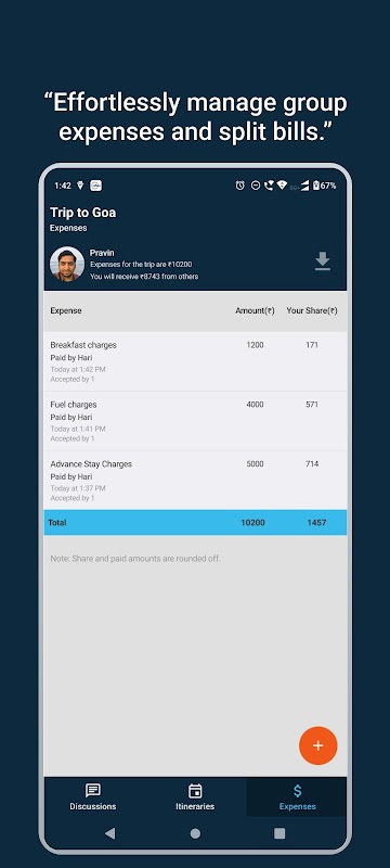 Quản lý chi phí, phân chia hóa đơn và dễ dàng điều hòa tài chính trong nhóm du lịch của bạn. Duy trì hồ sơ rõ ràng về các khoản đóng góp và chi tiêu, tạo điều kiện quản lý tài chính liền mạch trong suốt hành trình của bạn.