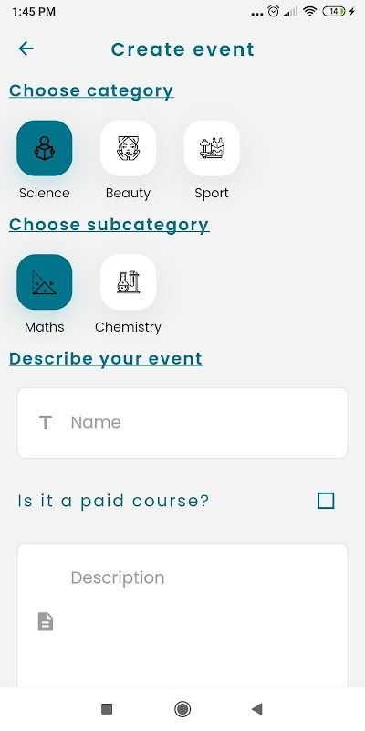 1) Select category and describe your course/event