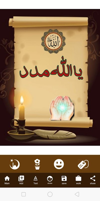 Hồi giáo bài Maker là đặc biệt thiết kế cho Làm đẹp Hồi giáo Post, như hadith, và trích dẫn Hồi giáo Application.Islamic bài Maker là rất hiệu quả, dễ sử dụng, đặc biệt thiết kế cho những người không biết về đặc biệt phần mềm chỉnh sửa.