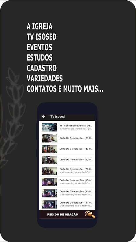 Aplicativo Institucional da Igreja ISOSED Chapecó! Pedidos de oração, TV Isosed, contatos, cadastros, conveniências, ministérios, estudos e muito mais!
