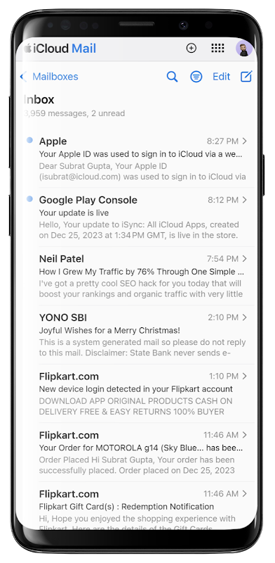 ✔️ **Thư:** Luôn kết nối với Thư iCloud của bạn. Gửi, nhận và quản lý email trực tiếp từ thiết bị Android của bạn.