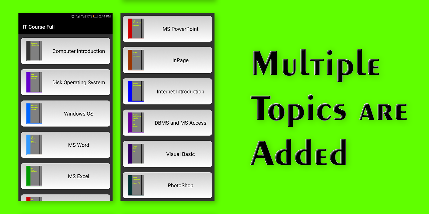 Ứng dụng này chứa các chủ đề có thể được đưa vào Khóa học CNTT / Máy tính của người dùng.