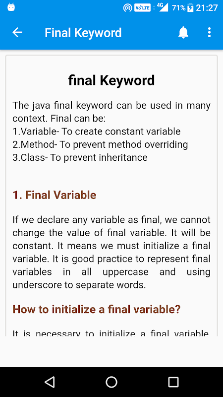 Ứng dụng này hoàn toàn hoạt động với ngoại tuyến. Cách dễ dàng để OOP Java Java Khái niệm cơ bản và các khái niệm nâng cao từ ứng dụng này.