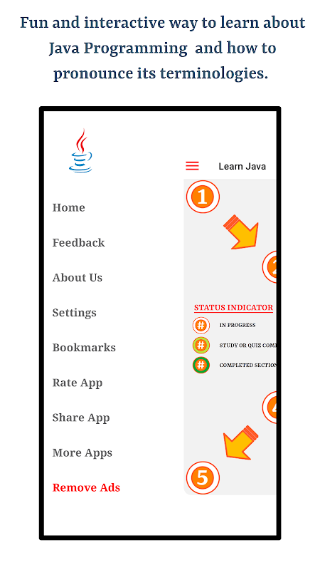 Ứng dụng này sẽ giúp bạn học cách phát âm chính xác các thuật ngữ được sử dụng trong Ngôn ngữ lập trình Java bằng ngôn ngữ tiếng Anh. Sau đây là các tính năng chính của ứng dụng này