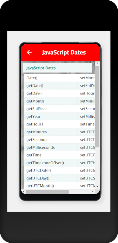 In App you can find the JavaScript cheat sheet in as well as in the text.