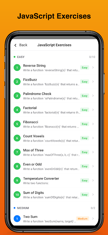 Một môi trường học tập JavaScript hoàn chỉnh ngay trên thiết bị của bạn. Viết và chạy mã ngay lập tức với trình soạn thảo chuyên nghiệp, bảng điều khiển tương tác, hướng dẫn từng bước, các bài tập lập trình thực hành và Chart.js tích hợp sẵn để trực quan hóa dữ liệu.