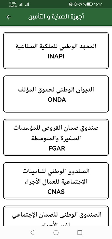 يحتوي التطبيق على كل المعلومات بيانات اللازمة لمعرفة الطريق لإ نشاء مؤسسة ناشئة كل الهيئات اللازم معرفتها موجودة في التطبيق