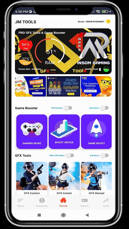 JM TOOLS adalah Profesional GFX Tools dan Game Booster untuk semua game. Tersedia secara gratis untuk anda semua. Silahkan Subscribe Saluran Youtube "INSOM GAMING" dan "JM TOOLS OFFICIAL" untuk konten video tutorial cara penggunaan dan informasi lainya tentang aplikasi ini.