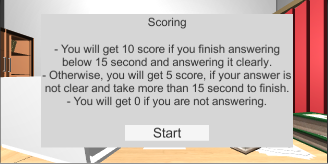 Đến một mức độ lớn, khái niệm của Virtual Reality đã được lan truyền rộng rãi để giúp mọi người cho các hoạt động của họ trong cuộc sống hàng ngày hiện nay. Ứng dụng này phát triển một hệ thống thực tế ảo trên phương tiện truyền thông để tăng khả năng nói và chuẩn bị người dùng cho tập luyện phỏng vấn xin việc. Nội dung được thực hiện theo hình thức mô phỏng phỏng vấn xin việc cho sinh viên hoặc công chúng nói chung. Thông qua ứng dụng này, chúng tôi sẽ biết làm thế nào tình hình khi thực hiện một cuộc phỏng vấn công việc thực tế, hình thức câu hỏi phỏng vấn đã đề xuất và thực hành như thế nào để trả lời câu hỏi. Ứng dụng này sẽ dẫn người sử dụng cảm nhận được cảm giác đó trực tiếp là trong văn phòng và gặp gỡ với người phỏng vấn cho thực-view. Không chỉ giải đáp thắc mắc, nhưng ứng dụng này cũng đi kèm với một thiết lập điểm khi trả lời câu hỏi kết thúc. Câu hỏi đặt ra là bao gồm 3 phiên, mỗi phiên có chứa 6 câu hỏi phỏng vấn chung. Các điểm có sẵn là 0 cho câu hỏi không trả lời, 5 để trả lời câu hỏi nhưng chưa rõ ràng, và điểm số 10 để trả lời câu hỏi và với ngữ điệu hoàn toàn rõ ràng. Ứng dụng này có thể được sử dụng ở những người bị độ tuổi 17-30 năm.