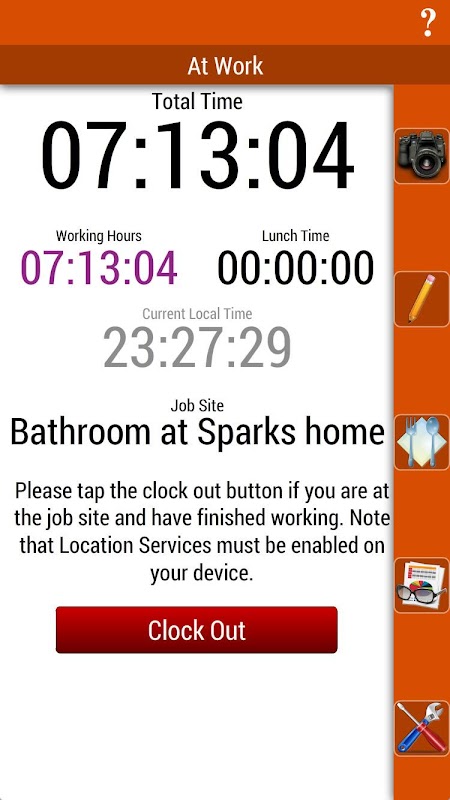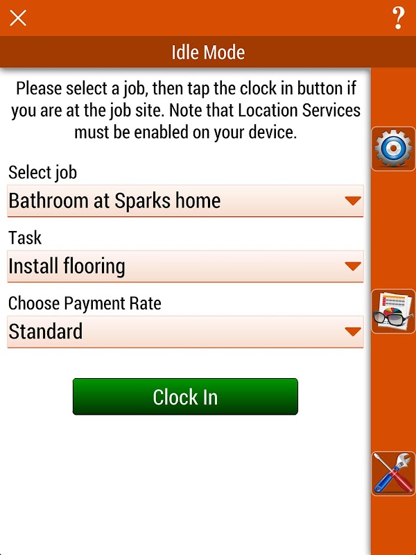 Time Tracker is a companion app to General Contractor Job Manager mobile application. It is free for employees whose employer is already using Job Manager. Time Tracker allows employees to clock in to specific jobs, clock in/out for lunch, track their own work hours and to send work related images and messages to employer and check their timesheet. Time sheets can be checked daily, weekly, monthly or yearly.