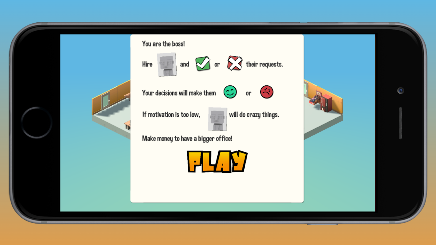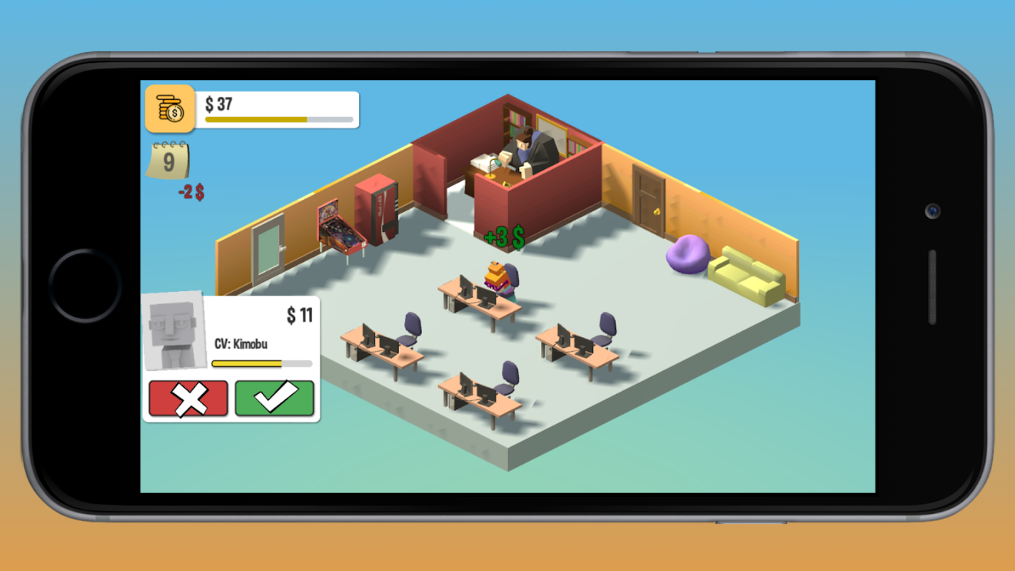 Trong trò chơi này, bạn phải thuê người cho văn phòng của mình và phát triển doanh nghiệp của mình thật nhiều để bạn có thể kiếm được nhiều lợi nhuận hơn và có thể tiếp tục phát triển hành trình của mình!