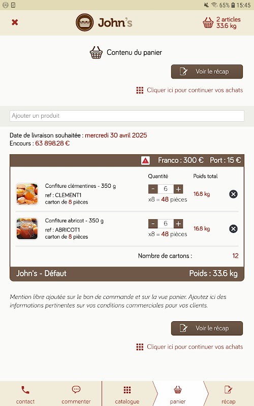 Giúp khách hàng chuyên nghiệp của bạn nhận đơn đặt hàng dễ dàng hơn bằng ứng dụng chuyên dụng của John. Cung cấp danh mục kỹ thuật số được cá nhân hóa 100% với giá đặc biệt cho từng khách hàng. Phổ biến ưu đãi và khuyến mãi của bạn.