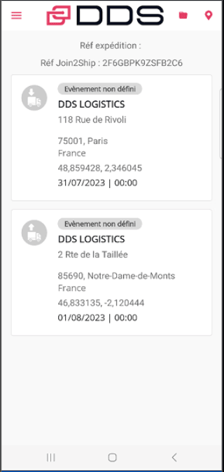 Nếu sự cố xảy ra trong chuyến đi, trong khi tải hoặc giao hàng, danh sách các sự kiện được xác định trước cho phép người lái xe tuyên bố sự bất thường, chậm trễ hoặc tạm ứng bằng cách nhấp vào trạng thái tương ứng và do đó tự động thông báo cho người khởi tạo về vấn đề. đơn đặt hàng hoặc người nhận . Ứng dụng di động này cũng cho phép lấy chữ ký cũng như tối đa 10 ảnh cho mỗi sự kiện. Việc nhập số lượng thực tế được tải hoặc giao cũng được cung cấp cho người lái xe.