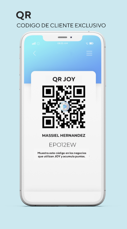 Regístrate y obtendrás un código de cliente ( también un código QR con nuestro logo ) con el cual podrás identificarte en los negocios inscritos en JOY y acumularás puntos en cada consumo que realices.