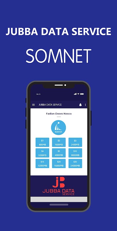 Juba Dữ liệu wuxuu ku fududeynaa inaad si fudud ugu shubato Internet Somnet.