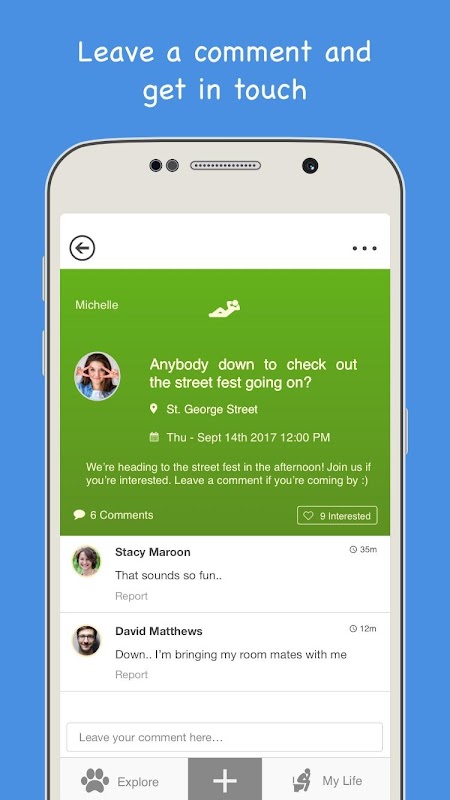• Share what you're in the mood to do, or an event taking place