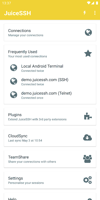Tất cả trong một máy khách đầu cuối dành cho Android bao gồm hỗ trợ SSH, Local Shell, Mosh và Telnet.