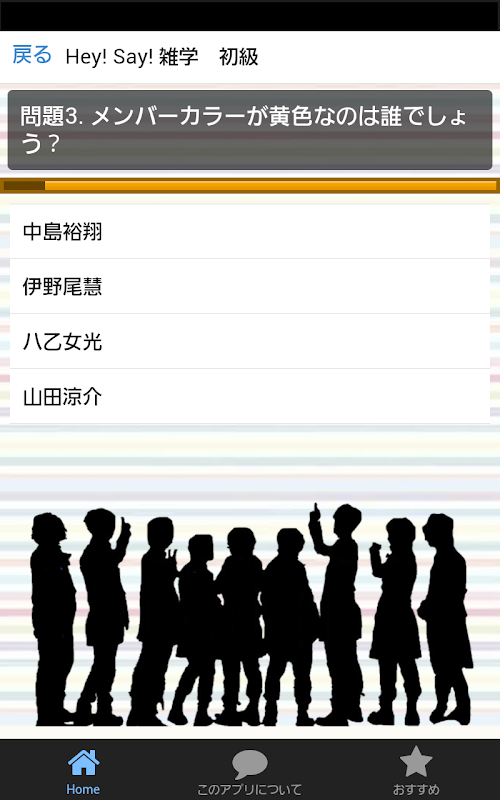 人気アイドルグループHey!Say!JUMPのクイズアプリ=JUMPer検定です。