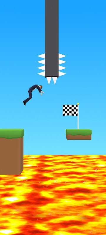 Kiểm soát đồng hồ để quyết định hướng nhảy. Hãy cẩn thận để không va phải các chướng ngại vật như gai, mắc-ma hoặc tường!