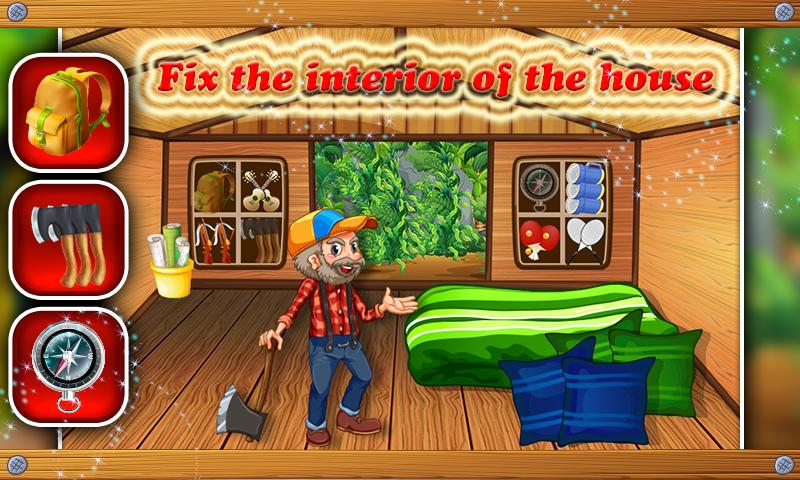 Thưởng thức cuộc phiêu lưu ngoài trời, khám phá các hoạt động vui nhộn điên để điền vào cuốn sách kỳ nghỉ của bạn với trại đẹp xây dựng kỷ niệm. Bắt đầu bằng cách xây dựng một trại lều cho việc này cho đi ngủ của bạn và các hoạt động đầy vui vẻ hoang dã khác. Khám phá rừng để tìm và chặt cây, chặt họ để thu rừng. Sử dụng các kỹ năng xây dựng và thiết kế tốt nhất để xây dựng các nhà trại tốt nhất. Dùng que sắt và móng tay gỗ để xây dựng và sửa chữa nhà trại. Bây giờ khắc phục và sửa chữa tất cả các cửa sổ bị vỡ và sắp xếp nội thất của ngôi nhà lều giống như thiết kế thời trang để cho nó cái nhìn tốt nhất.