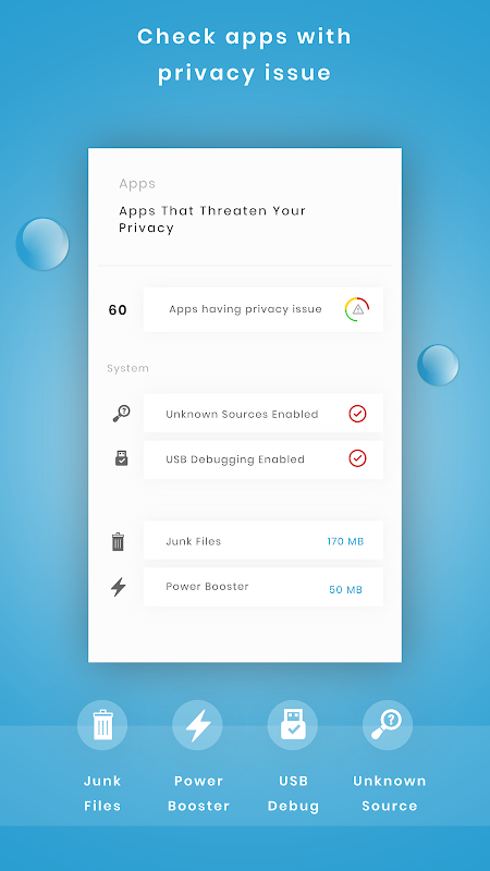 ⁃ Automatically scan the app which is newly installed in your device and notifies you that which kind of risk is associated with it.