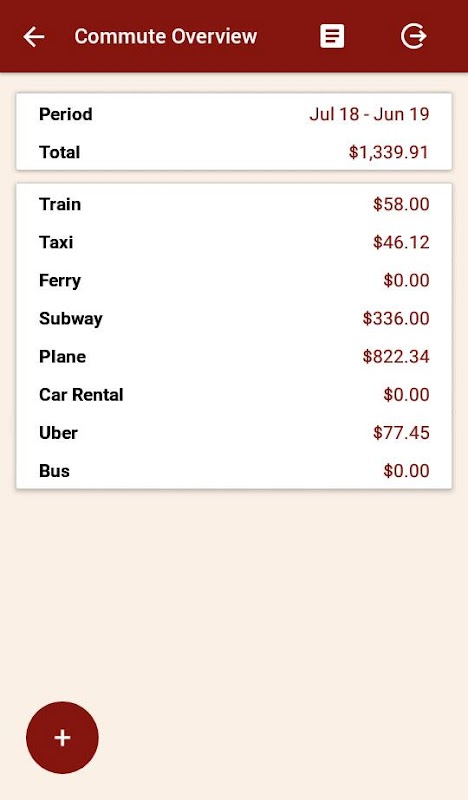 8 tùy chọn cho các loại chi phí đi lại, chẳng hạn như xe buýt, xe lửa, taxi, uber, vv
