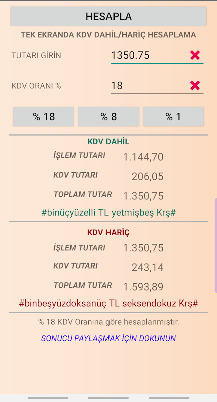 Giới thiệu về KDV Hesapla - kdv dahil hariç