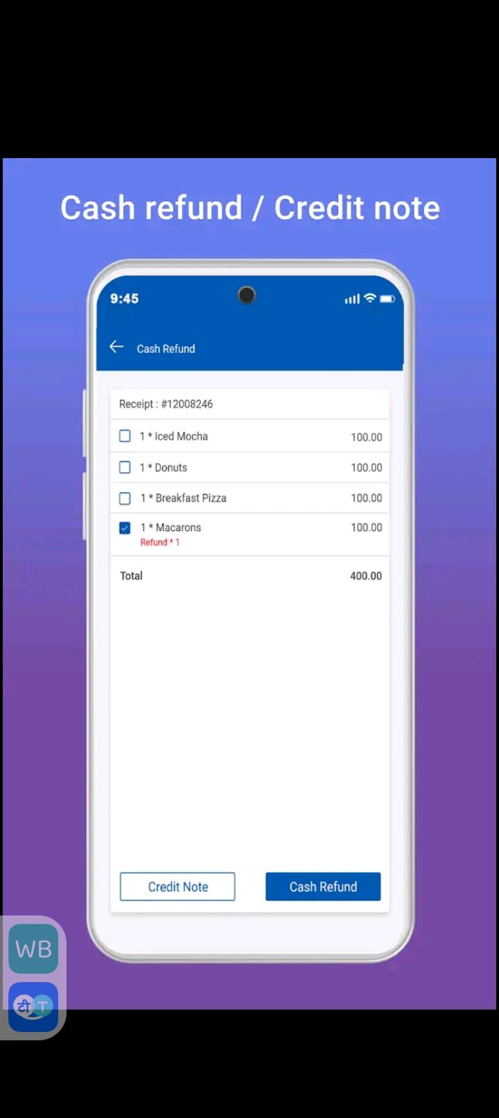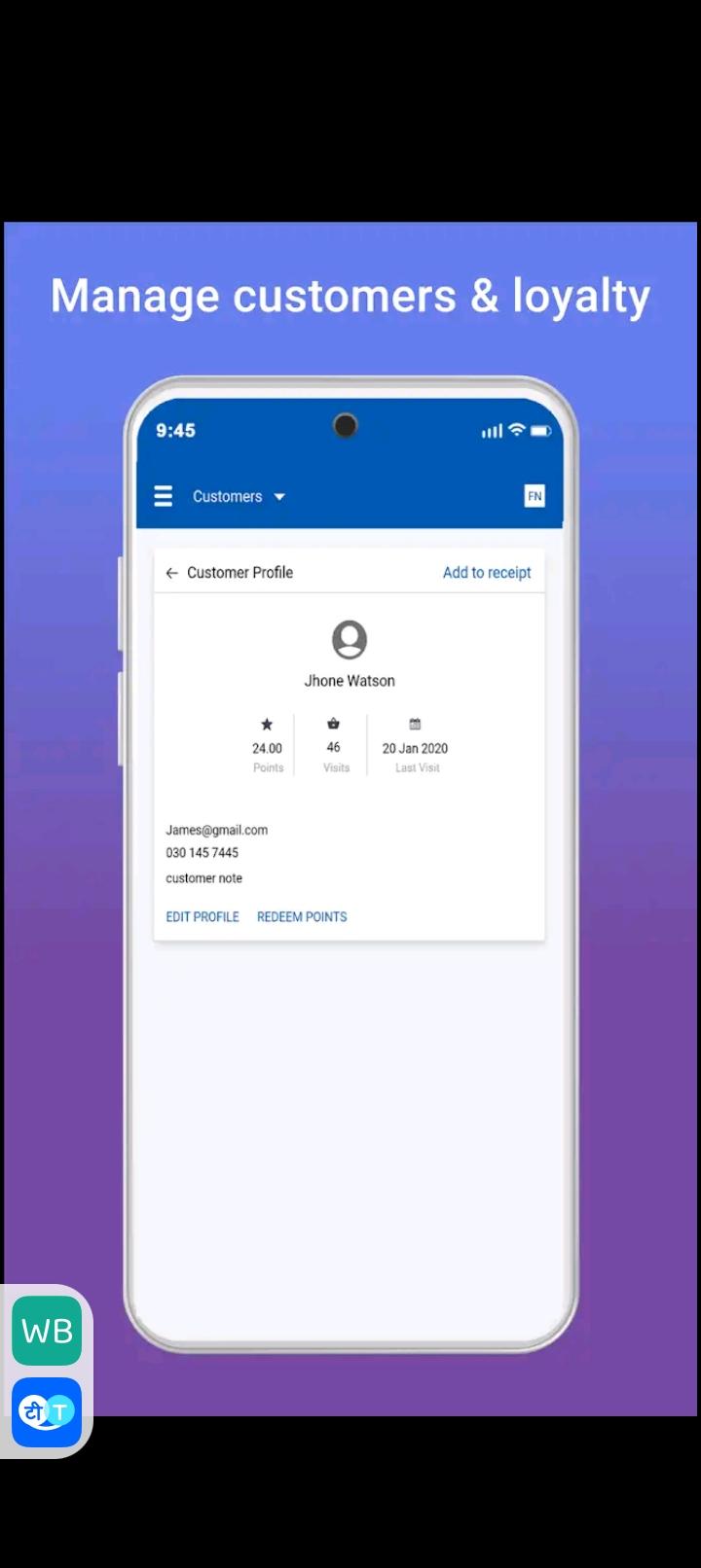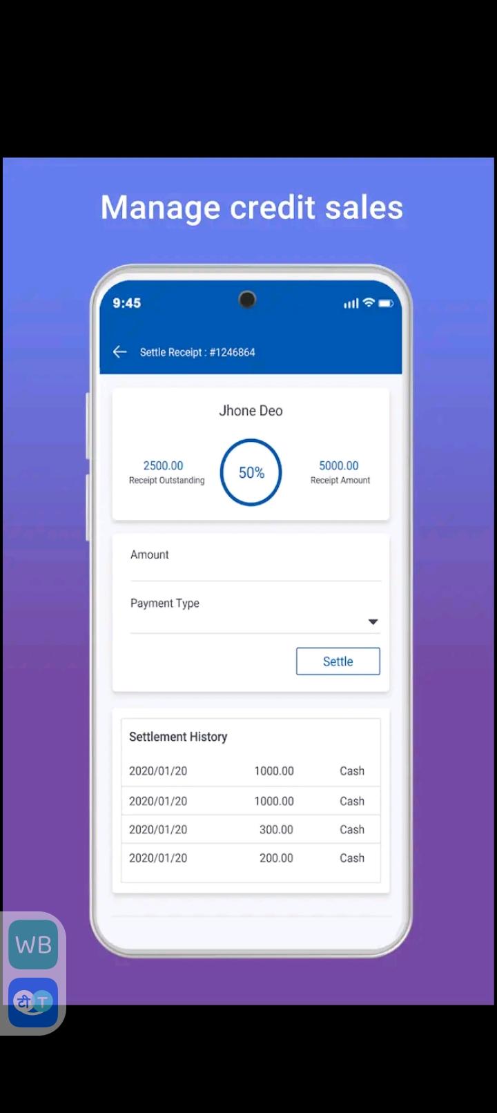 Manage your sales seamlessly- Sell from a smartphone or tablet- Accept payment from any method- Save and manage pending bills - Issue printed receipts, email, or share them through social media- Connect a receipt printer/barcode scanner and cash drawer- Share your product details via email or WhatsApp