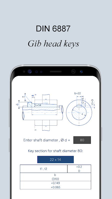 Ứng dụng này cung cấp kích thước cho các loại then song song và then đầu chữ U, rãnh then và độ lắp ghép của chúng theo tiêu chuẩn DIN/ISO và ANSI. Cho dù là cho mục đích thiết kế hay gia công trục và moayơ, ứng dụng này đều hữu ích để tuân thủ các tiêu chuẩn.